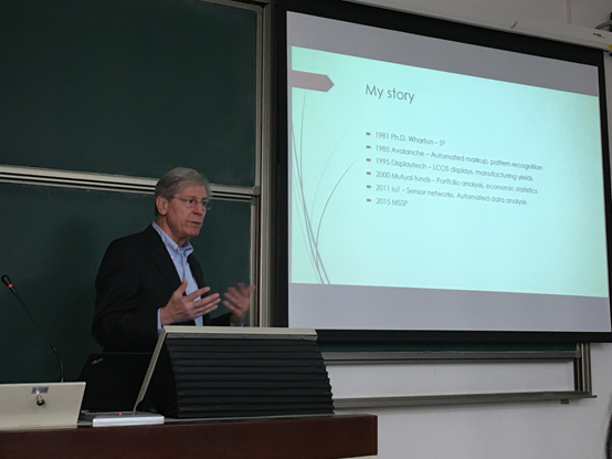 Haviland Wright博士毕业于宾夕法尼亚大学沃顿商学院,毕业后一直从事统计类的工作,其涉及的领域非常广泛,现于波士顿大学数学与统计学院从事研究与教育工作。在本次讲座中,Wright博士首先与我们分享了他的人生经历,作为一名一直从事数据分析的统计工作者前辈,在场的同学都表示从他的经验分享中,自己不仅获取了很多有益的信息,也对自己有着极大的激励作用。紧接着,Wright博士为我们简单地介绍了他在波士顿大学开展的MSSP项目(master of science-statistical program)。通过对项目的介绍,向我们展示了统计学的能力与巨大的魅力,它不仅作为本身数学领域的一个学科重点,它还能帮助其他学科提供有力的科学证明,其中的思路和方法值得每一个科研工作者学习。
