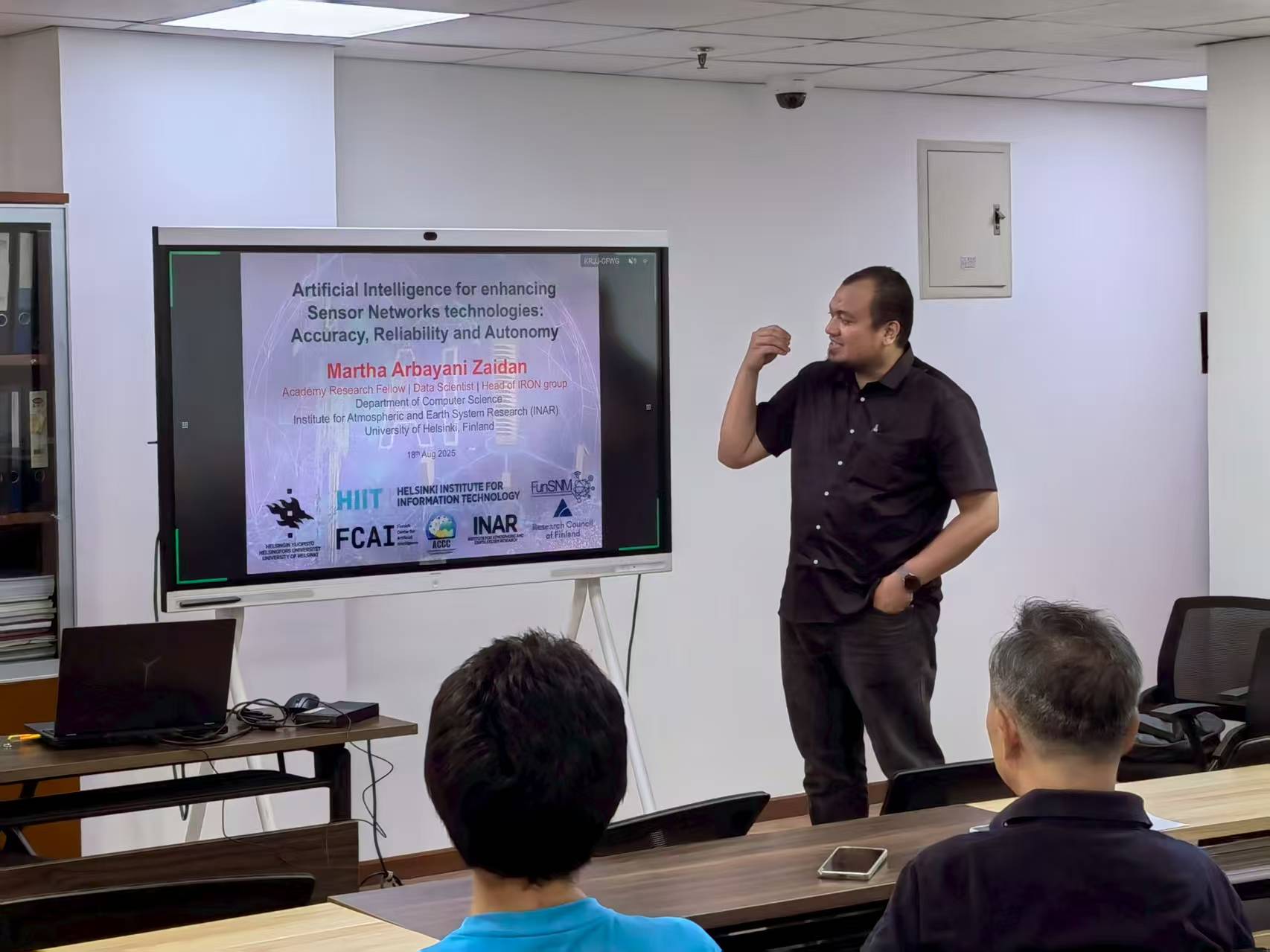 Recently, Senior Advisor Dr. Zhou Putian and Dr. Martha Arbayani Bin Zaidan at the University of Helsinki were invited to visit our school for an academic exchange on the complex systems of atmosphere. From August 16th to 24th, 2025, they conducted a course on atmospheric chemistry modeling, and also engaged in academic exchanges and consultations during the rest of the time. We also discussed and advanced further collaboration under the PEEX (Pan-Eurasian Experiment) program.